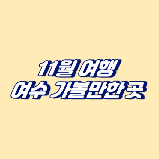 우리의 11월 여행 가이드에 오신 것을 환영합니다. 이곳에서 여러분을 여수의 꼭 가봐야 할 상위 여섯 개 명소로 안내해 드리겠습니다. 멋진 전망, 풍부한 문화유산, 흥미로운 유적지로 여수는 잊지 못할 모험을 찾는 여행자들에게 독특한 경험을 제공합니다. 그림 같은 해안선을 따라 산책하거나 역사적인 장소를 탐험하거나 맛있는 현지 음식을 즐기는 경우, 여수는 여러분의 감각을 사로잡고 평생 동안 기억에 남을 추억을 만들어 줄 것입니다.